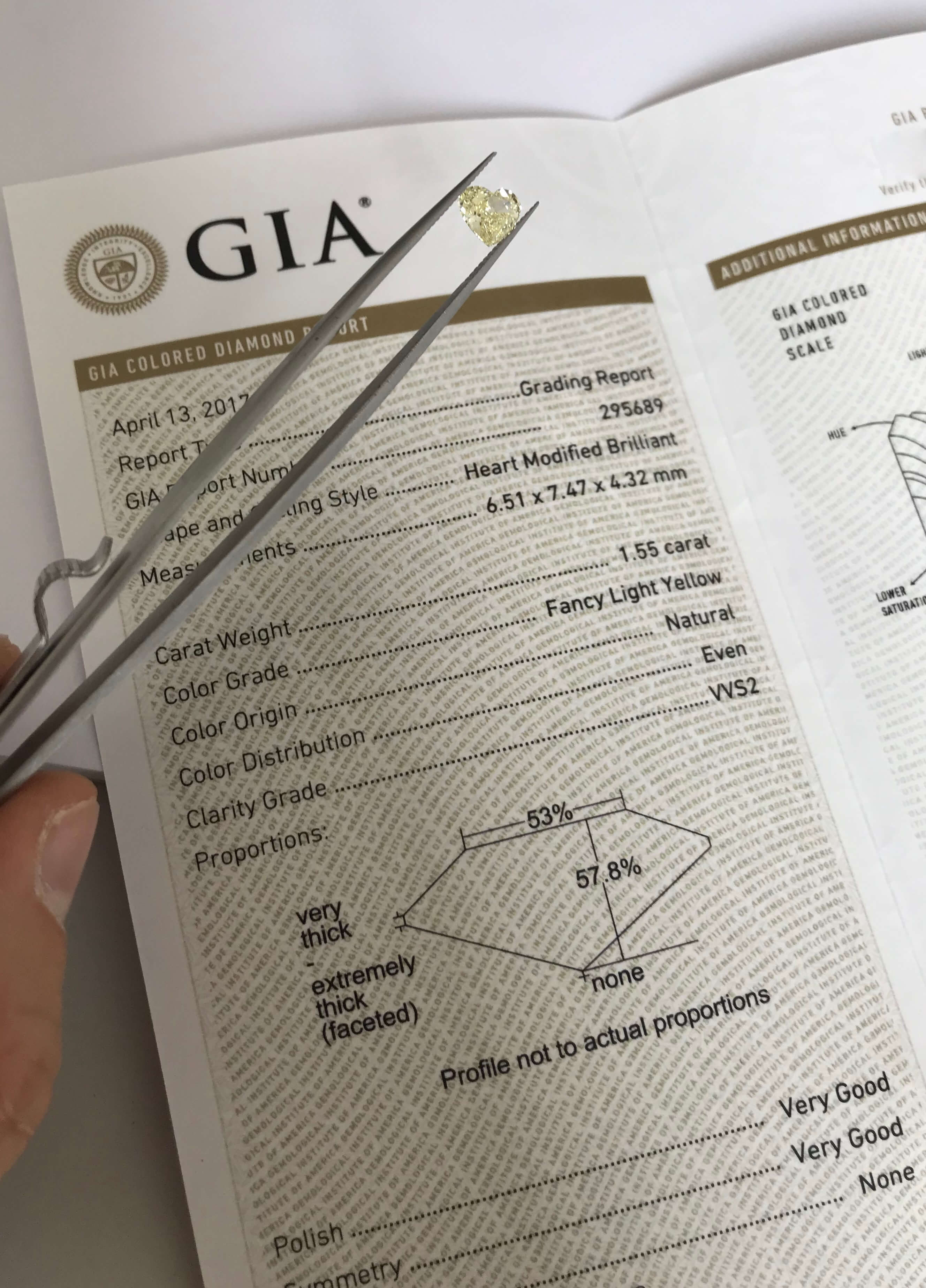 Natomiast drugim było serce (które swoją urodą dosłownie skradło nasze serca) o masie 1,55ct, barwie Fancy Light Yellow i czystości VVS2.